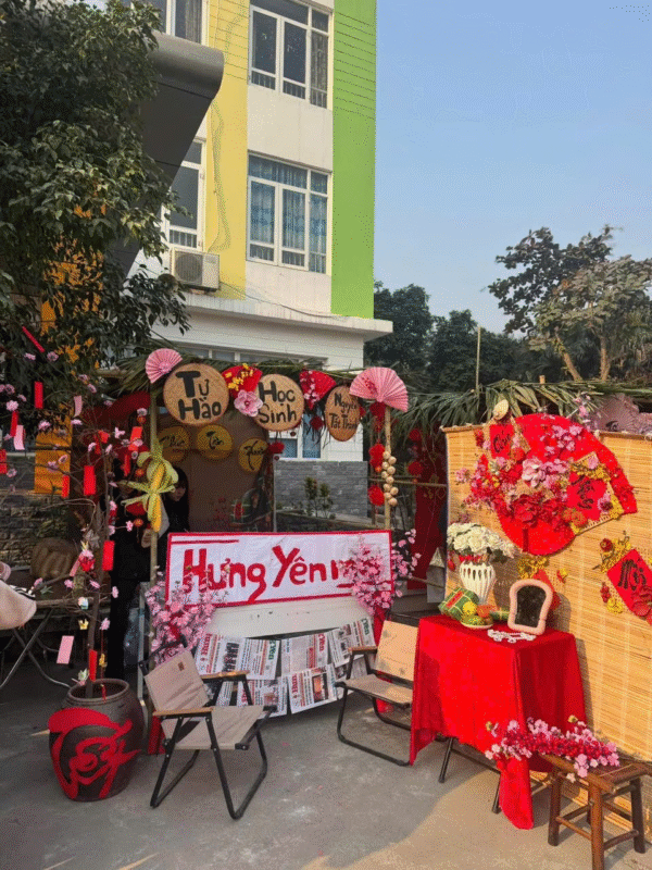 Nhân dịp Tết cổ truyền của dân tộc, nhà trường đã tổ chức Hội chợ ngày Tết với sự tham gia sôi nổi của các lớp. Mỗi lớp đảm nhận việc trang trí và trình bày gian hàng hội chợ mang đậm không khí Tết truyền thống. Bên cạnh đó, học sinh còn hào hứng tham gia các hoạt động như cuộc thi gói bánh chưng và bày mâm ngũ quả, qua đó hiểu hơn về phong tục tập quán ngày Tết, rèn luyện kỹ năng làm việc nhóm và góp phần gìn giữ, phát huy các giá trị văn hóa dân tộc.