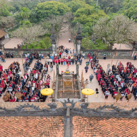 Thầy cô cùng học sinh làm Lễ dâng hương lên các vị Vua tại Đền Cố Đô Hoa Lư, Ninh Bình